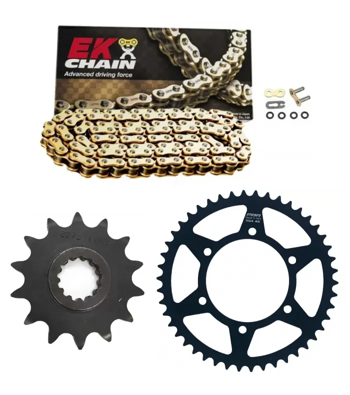 Potencia y durabilidad: Obtenga un mejor desempeño con nuestro kit de transmisión Kawasaki Versys 300, ideado para mejorar la relación entre la corona y el piñón.